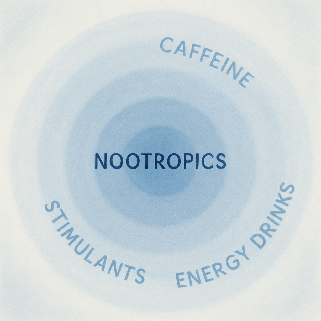 Um artigo afirma: “nootrópicos, pela definição mais ampla, podem também incluir compostos psicoativos bem-aceitos [socialmente], como bebidas cafeinadas e bebidas energéticas”.