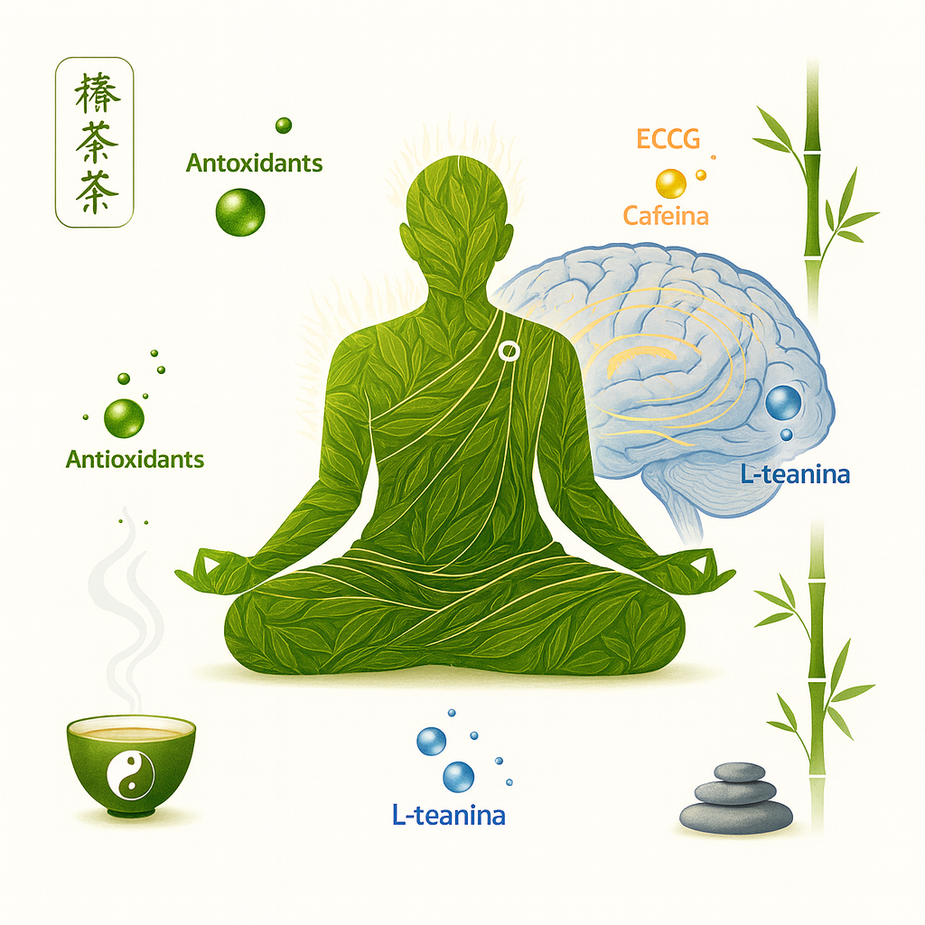 O segredo está na sinergia molecular única entre três protagonistas: a epigalocatequina galato — EGCG (o antioxidante ninja) — L-teanina (o monge meditativo) e cafeína (o guerreiro alerta). Enquanto outros nootrópicos apostam em um mecanismo, o chá verde orquestra uma sinfonia neurológica: a cafeína te desperta, a L-teanina evita a agitação, e o EGCG protege tudo nos bastidores.