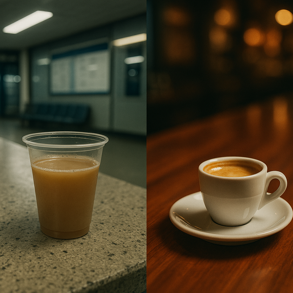 Isso é quase o mesmo que perguntar: “café é bom?”. Café pode ser uma água rala servida em copo plástico numa rodoviária – o famoso “cháfé” – ou pode ser um espresso inteiro do Starbucks. Qual dos dois você prefere? Se você não for louco, seus sentidos irão ficar com o Starbucks. Ele certamente garante uma experiência melhor. Não é nenhuma surpresa imaginar que os efeitos estimulantes do espresso também serão mais potentes que os do café aguado da Central do Brasil. Além de ser feito com um pó de café “premium” e de ser preparado por baristas que sabem o que estão fazendo, o espresso concentrará mais cafeína. No fim, é tudo café, certo? Mas café não é tudo igual.